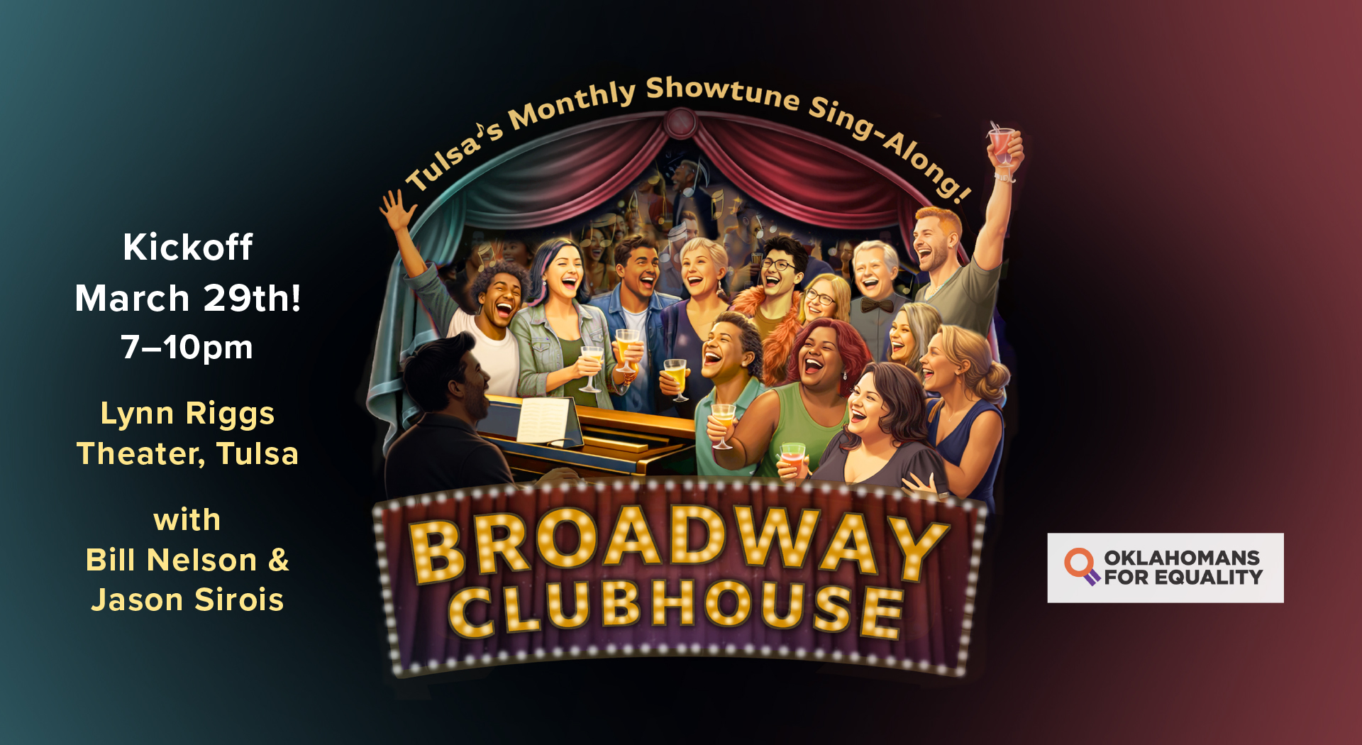 BROADWAY CLUBHOUSE will be a place for Tulsa’s theatre community to get together all at the same time, for people who don’t perform to get to belt out songs with everyone else, and for anyone just looking for the friendliest vibe in town.